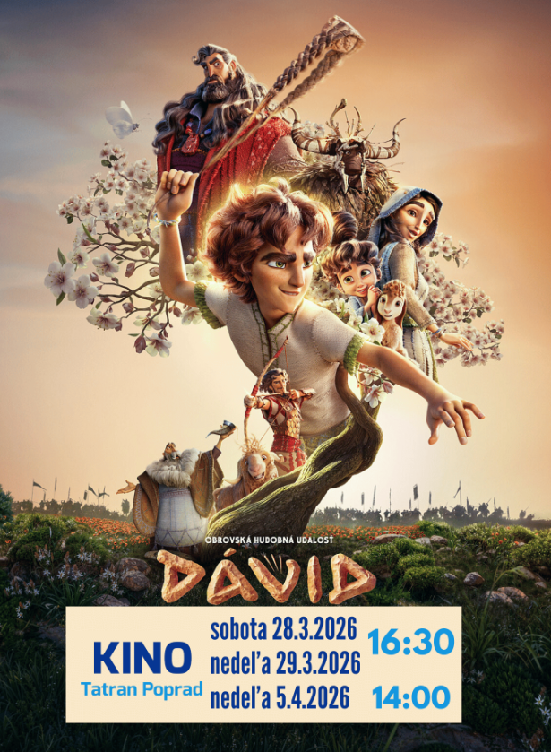 Kino Tatran bude rozprávku Dávid premietať týždeň pred a počas Veľkonočných sviatkov – v sobotu 28.3. a v nedeľu 29.3. oba dni o 16:30 a počas Veľkonočnej nedele 5.4. o 14:30 hod.